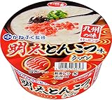 この商品は、明太子で有名な“かねふく”の監修によって商品化されたもので、まろやかな豚骨スープにかねふくの明太子を使用したピリ辛な“明太とんこつ味”となっております!